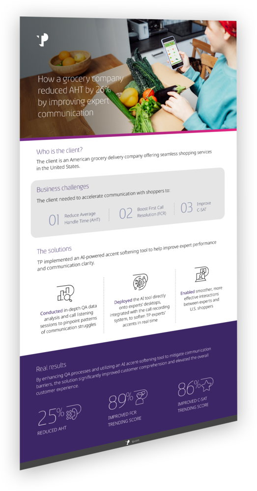 A top grocery delivery company transformed communication by breaking language barriers and improving call clarity with AI-powered accent softening. These innovations streamlined operations and elevated both customer and employee experiences.