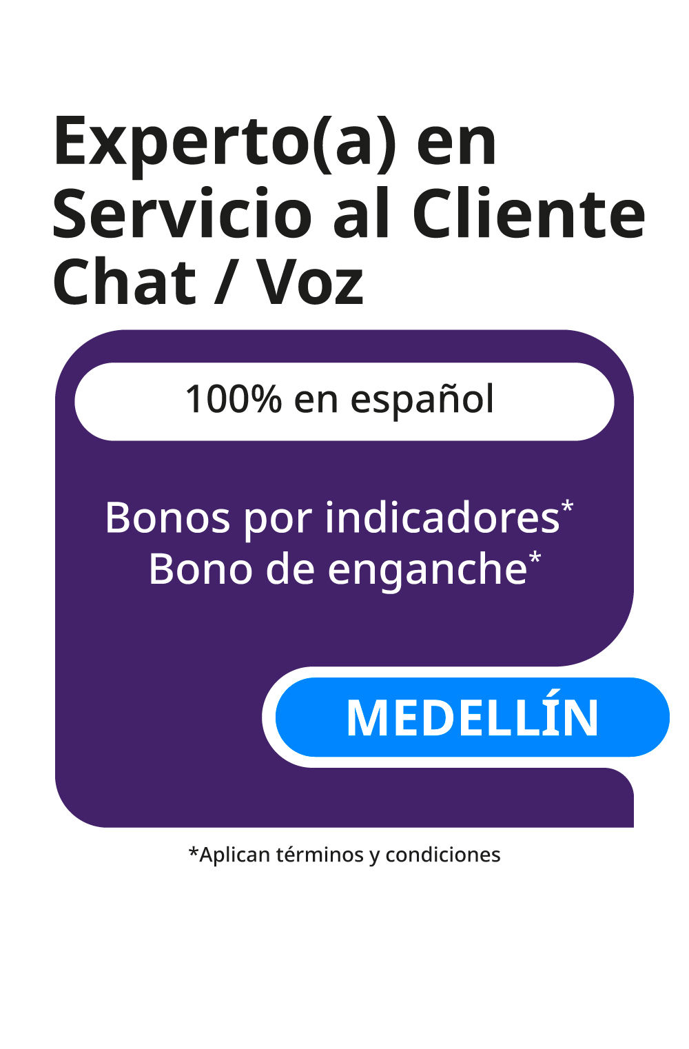 Aplica a nuestras convocatorias 100% en español y bilingües en Ventas - Comercial - Servicio al cliente y obtén beneficios exclusivos.